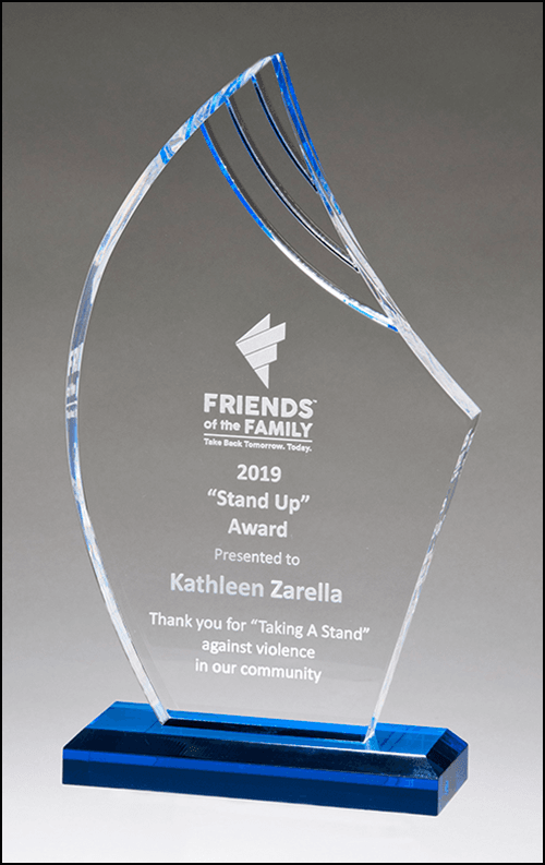 Flame Series Clear Acrylic with Blue Accents and Matching Blue Acrylic Base